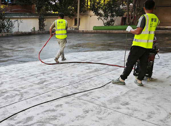 3、對(duì)水泥地面進(jìn)行徹底吹掃,使其水泥表面干凈、干燥,為準(zhǔn)備下一步材料施工做好充分準(zhǔn)備。