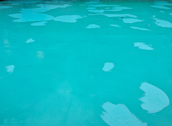 4、底涂層工藝:材料為液體透明材料,使用專用噴涂機(jī)或滾刷,使用封底料均勻涂刷在水泥表面,使用量控制在2-4%,具體視基礎(chǔ)情況所定,涂刷后的水泥地面濕潤(rùn)一致,待底涂固化后,方可進(jìn)行下步工藝施工,通常固化時(shí)間12小時(shí)以上,具體視天氣溫度、濕度固化時(shí)間會(huì)有所浮動(dòng)。